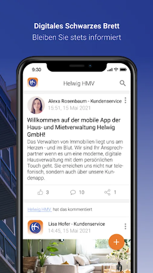 - Transparent: Documentation is “half the battle” for us. With the Helwig HMV app, you receive all the important information about your property directly on the notice board and can comment on it.
