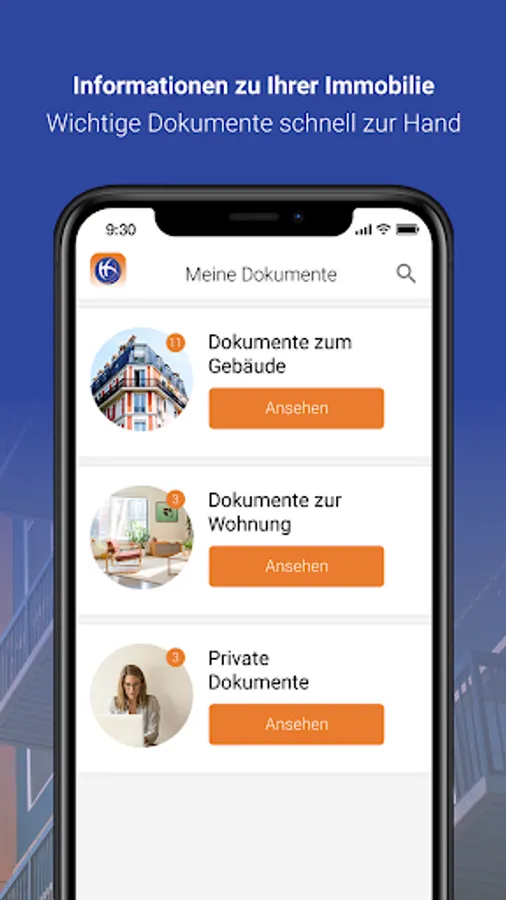 As a customer of Haus- und Mietverwaltung Helwig GmbH, you benefit from a particularly innovative customer service that offers you a lot of freedom. With the Helwig HMV app, you can report concerns and damage to us around the clock, including photo documentation, using your smartphone. In addition, we provide you with a digital document folder with important documents for your property (s). Via the digital bulletin board, we proactively provide push messages about important information about the real estate entrusted to us.