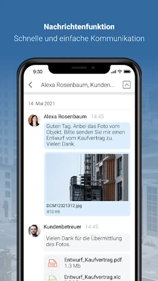 - Fast and efficient communication: In our app you will find all information and documentation bundled in one place - in your pocket and available digitally at all times