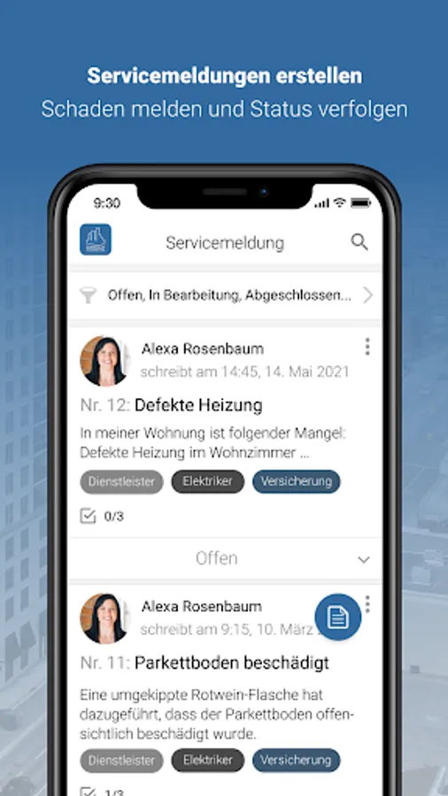 - Interactive: You can record damage reports or other concerns with photos directly in the app. Your case will be processed quickly and you will receive regular status updates via push messages.