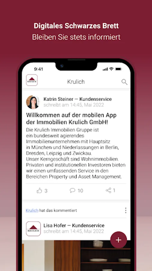 As a customer of Immobilien Krulich GmbH, you can now use an additional opportunity to exchange information with us.