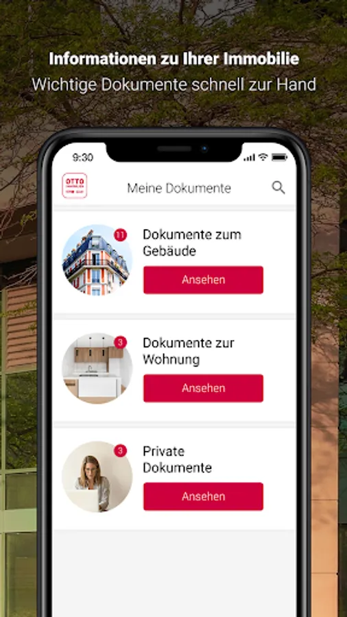 Use the Otto Immobilien App as the best source of information. Important documents about your property and forms can be viewed via the app.