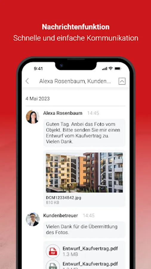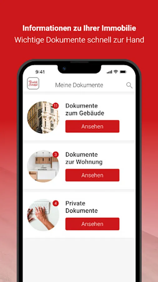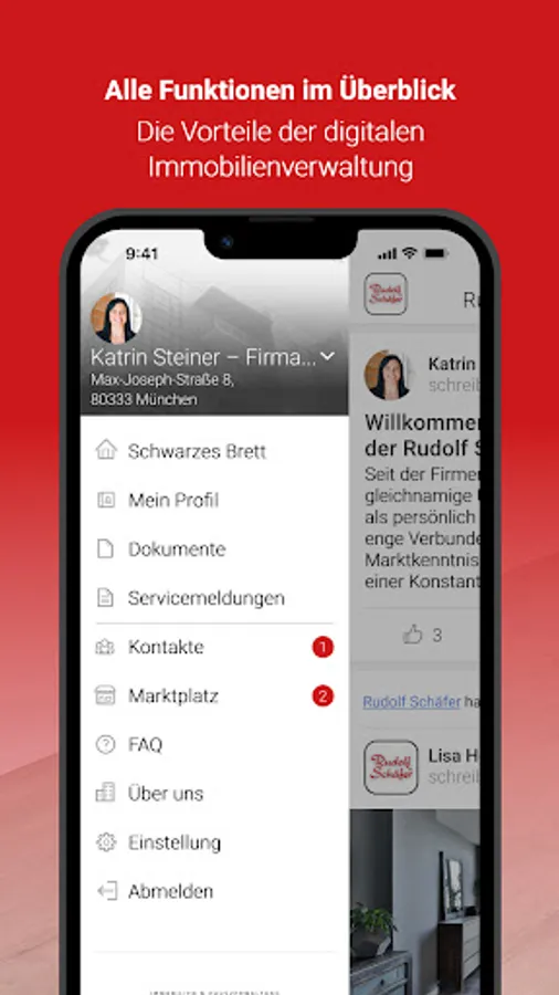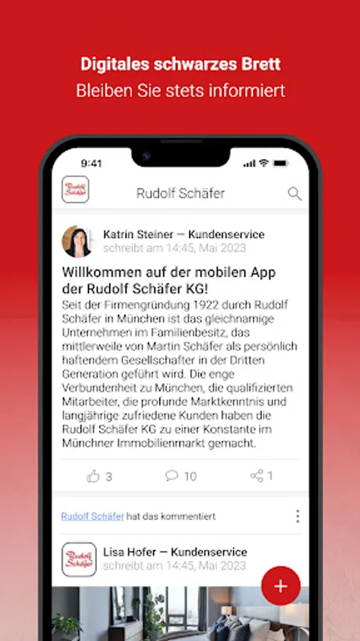 - Transparent: For us, documentation is “half the battle”. With the Rudolf Schäfer KG App you get all the important information about your property directly on the bulletin board.