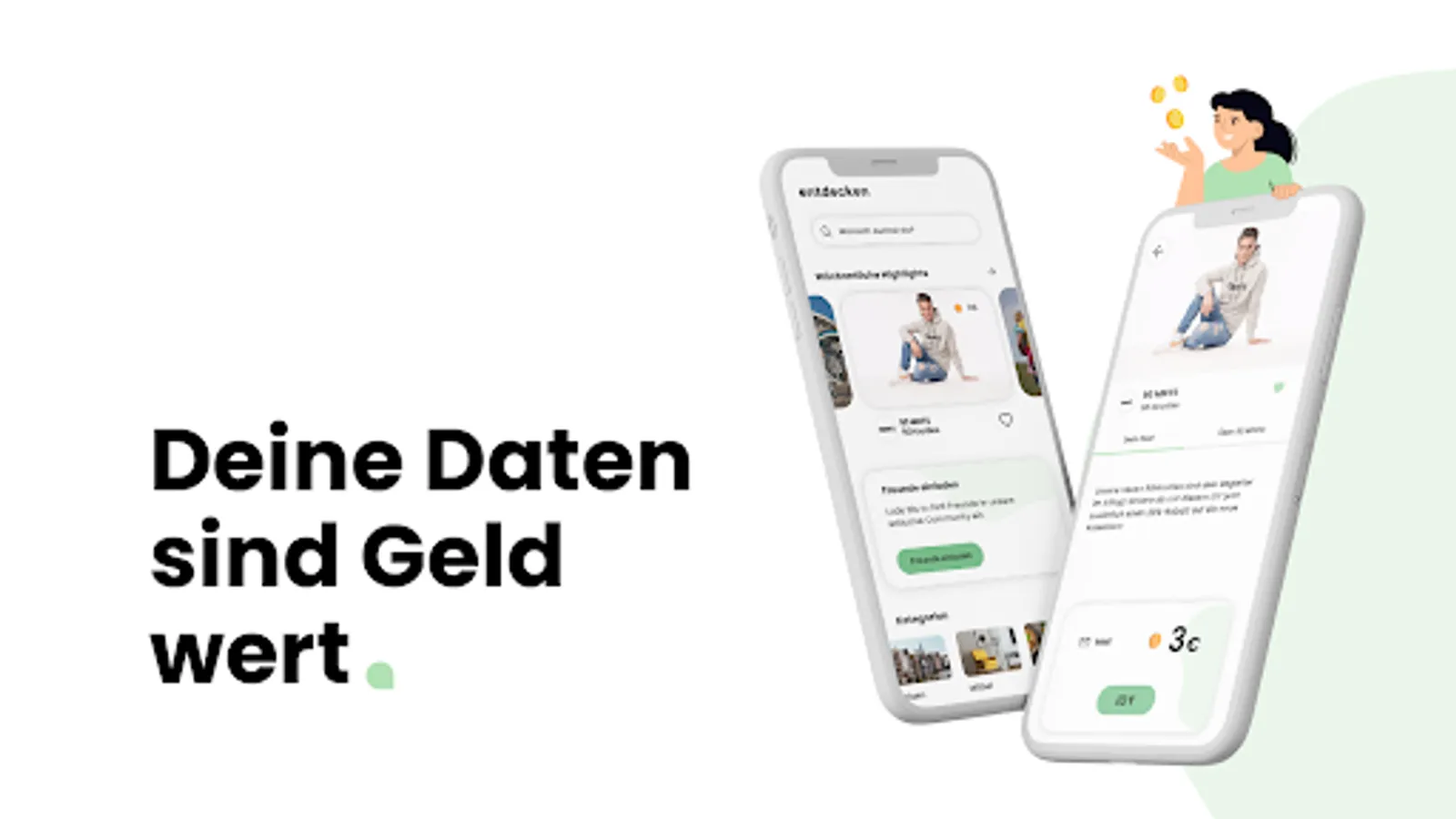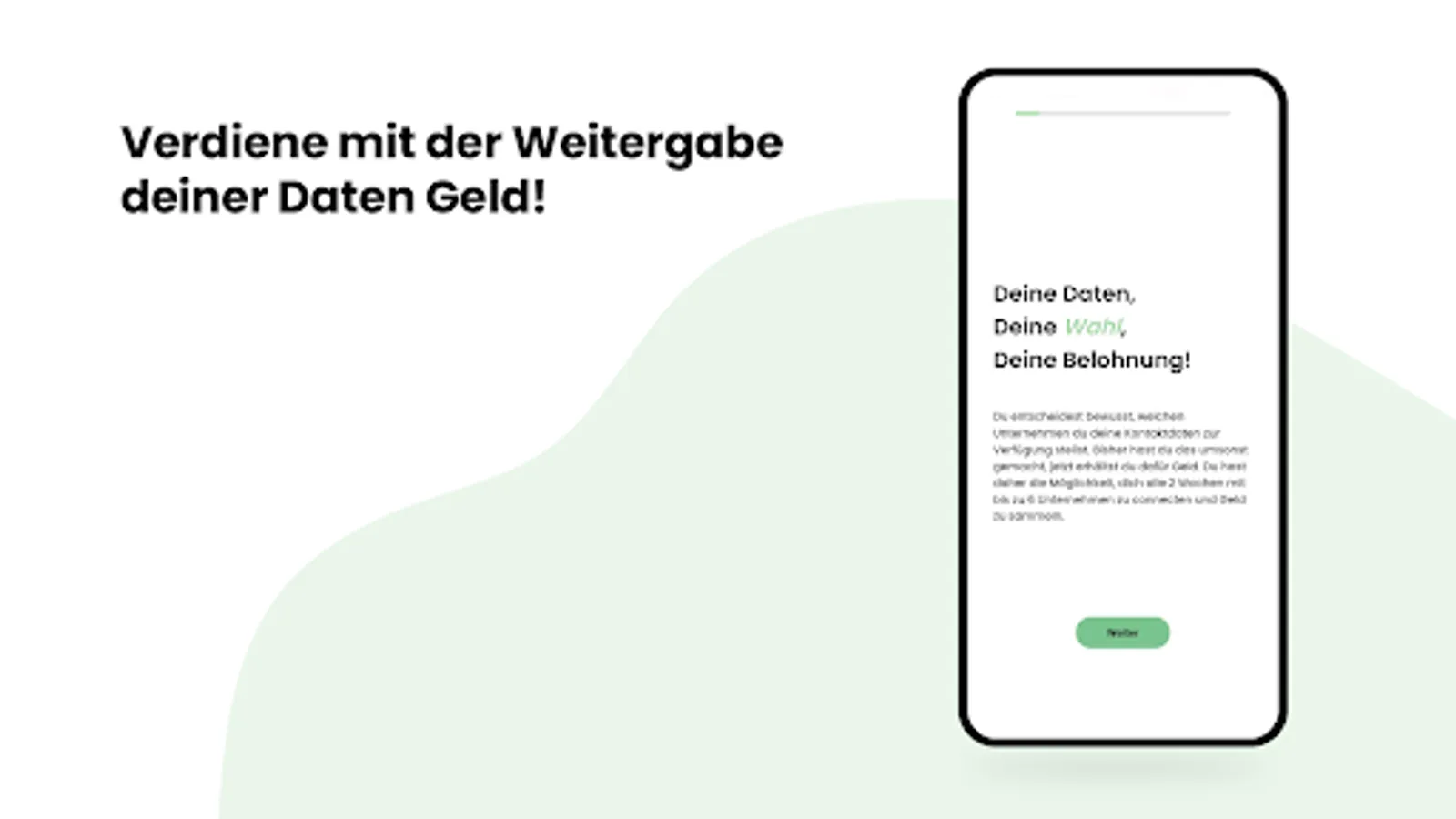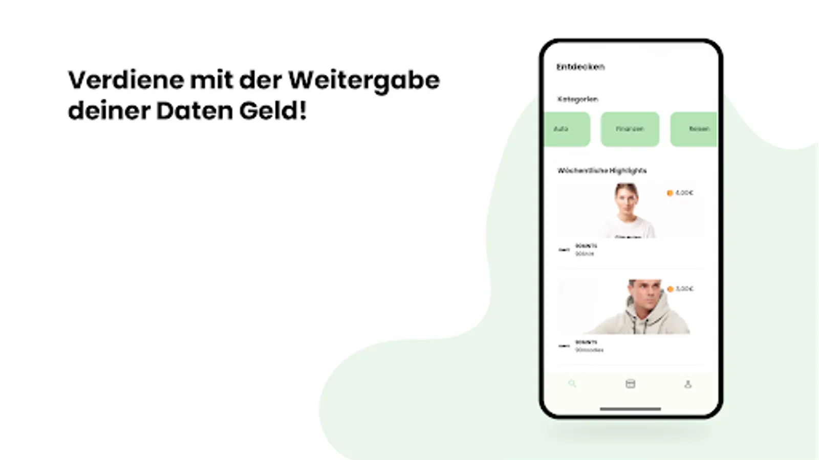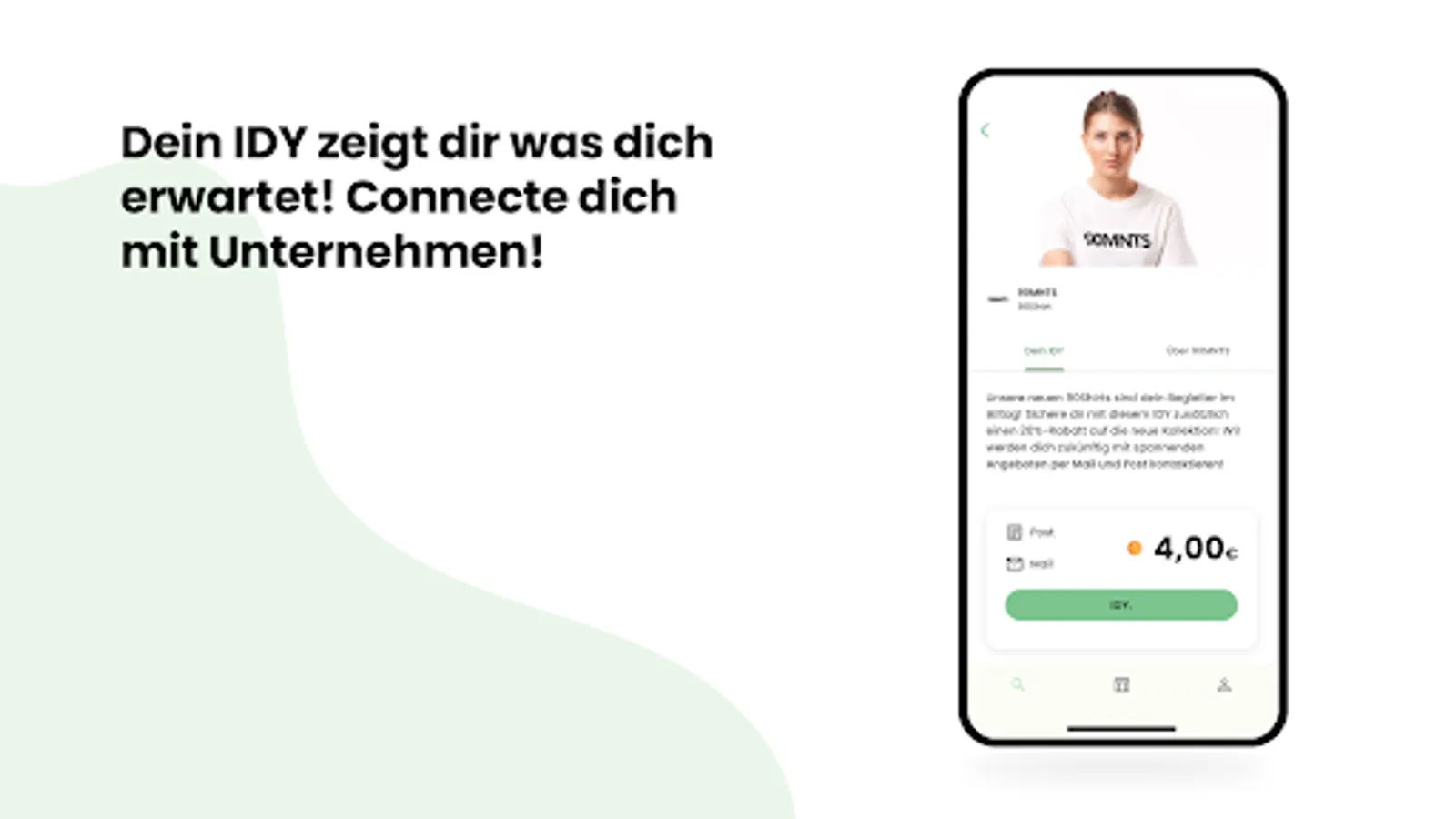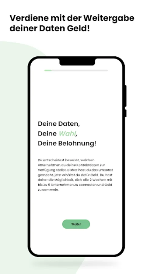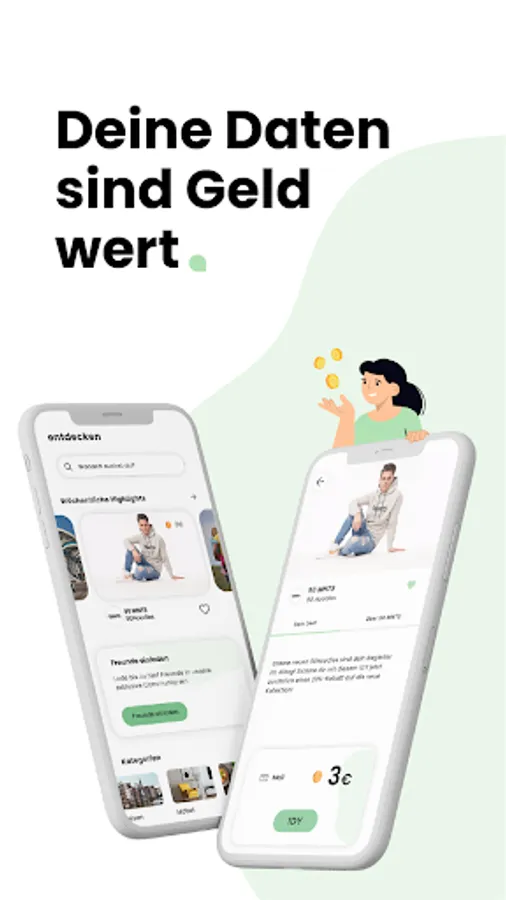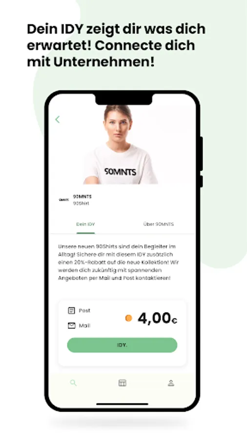 Look forward to exciting companies and their offers. As a reward for sharing your data, you will receive money directly from the companies. This will be credited to your app account after completing an IDY and, if you have collected more than €10, transferred to your specified bank account at the beginning of the following month.
