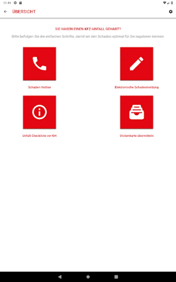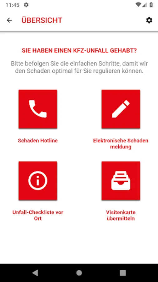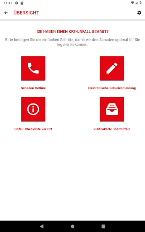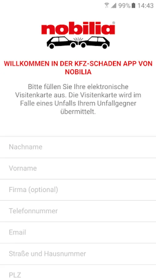 The car damage nob app provides immediate assistance and assistance in case of damage in case of motor vehicle damage. You can use the electronic claim report to enter details and photos of your accident and conveniently send them at the scene of the accident. In addition, you can deposit an electronic business card, which you can send to your accident opponent to regulate the damage as quickly as possible.