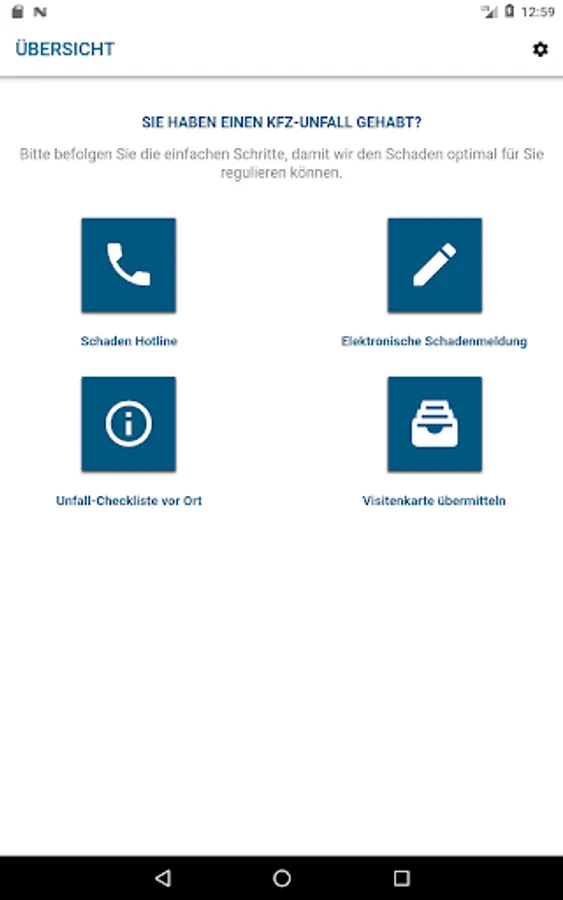 The Accident Assistance MV App offers immediate help and support in the event of damage to a vehicle. You can use the electronic damage report to record details and photos of your accident and conveniently send them to the scene of the accident. You can also store an electronic business card that you can send to your opponent to settle the damage as quickly as possible.