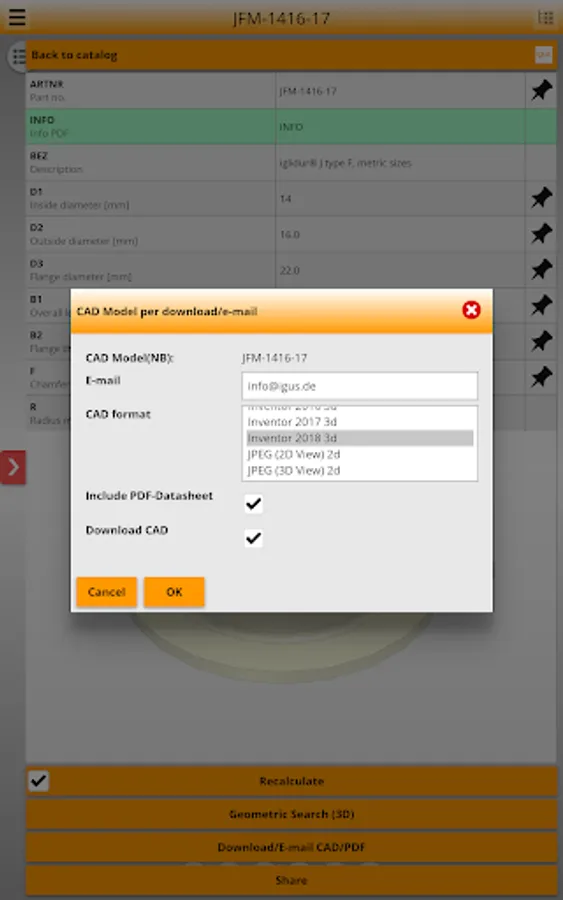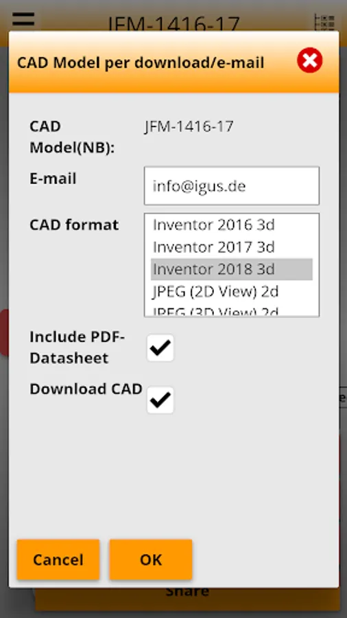 The igus® 3D-CAD model app is a download service for 3D CAD data.