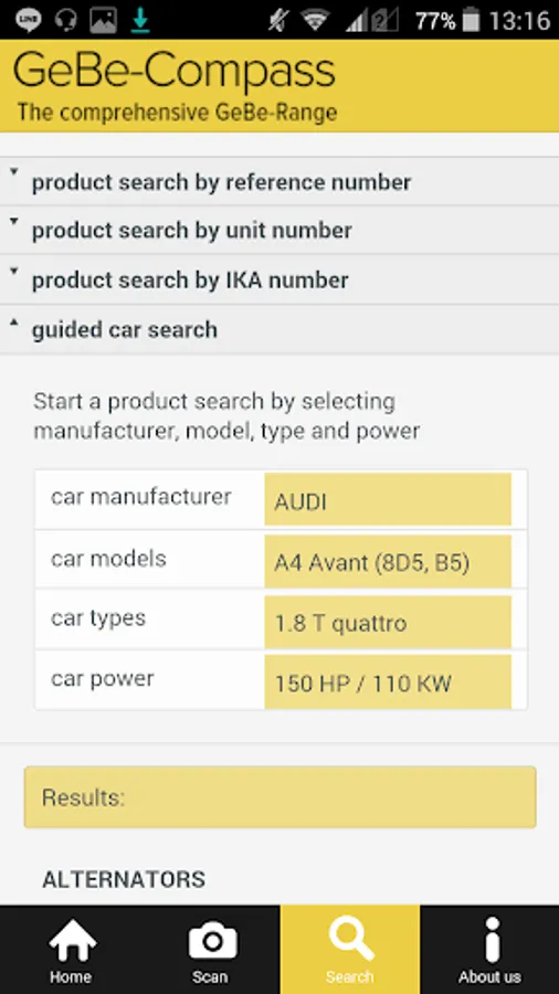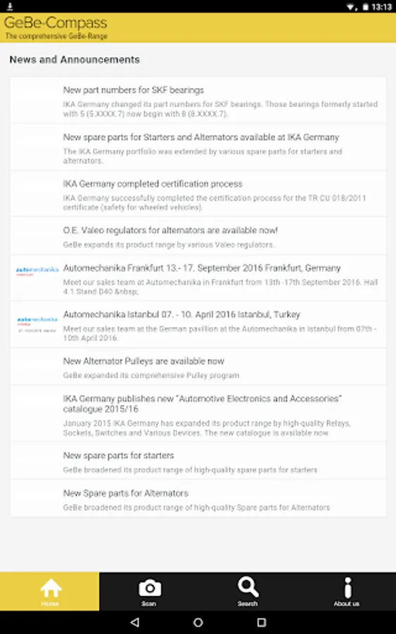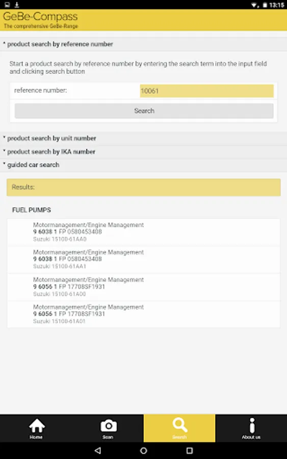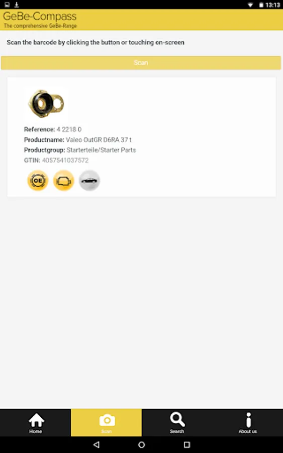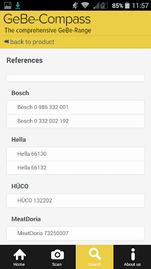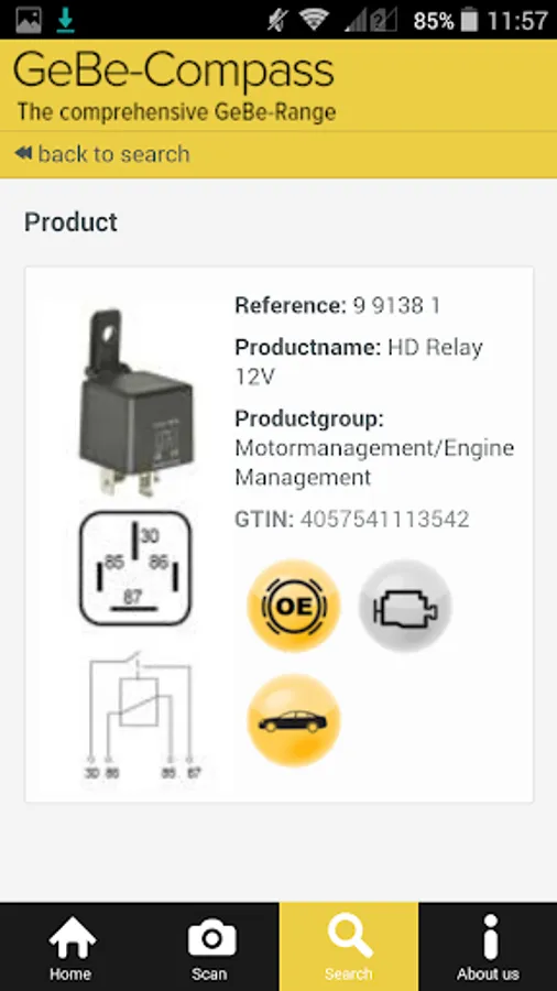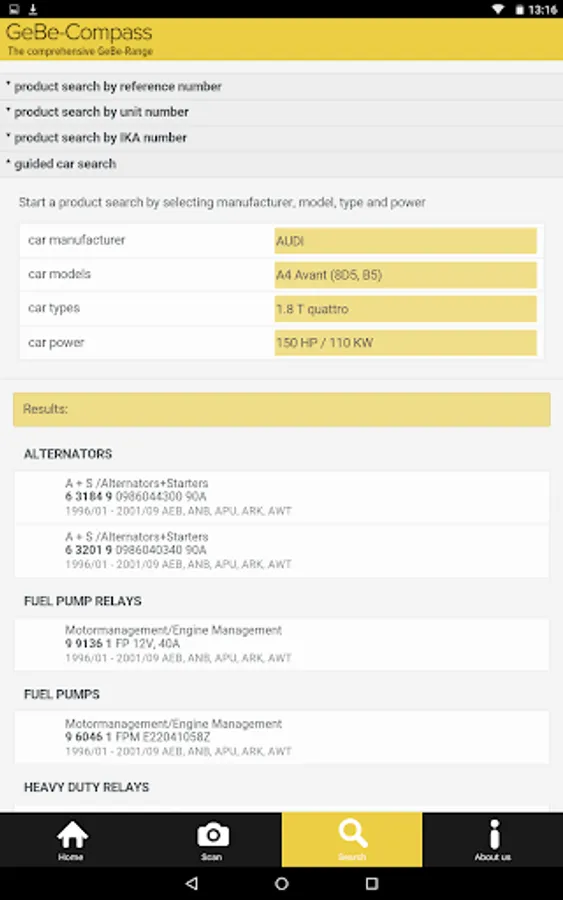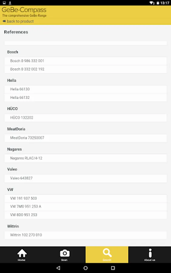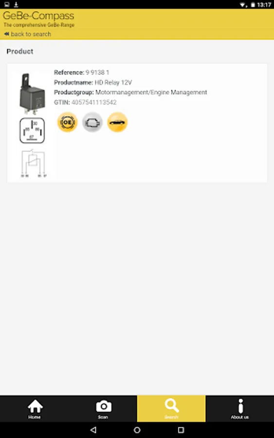 Discover the GeBe product range for high-quality spare parts for starters and alternators, engine management components and relays and switches. Multiple filters allow for efficient browsing of more than 10,000 different part-numbers: Search and find products by reference-, unit-, GeBe product number or vehicle application. As the GeBe product range is continuously broadened, the GeBe-Compass app will always provide you with the latest after-market innovations.