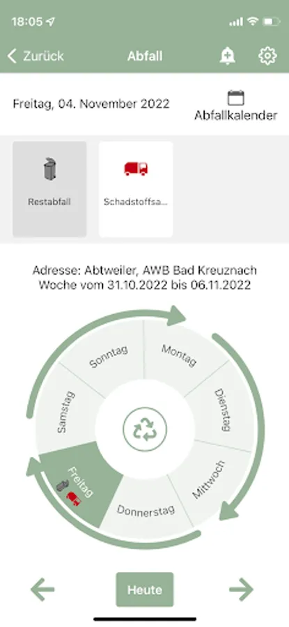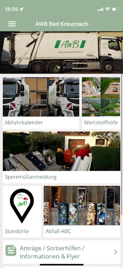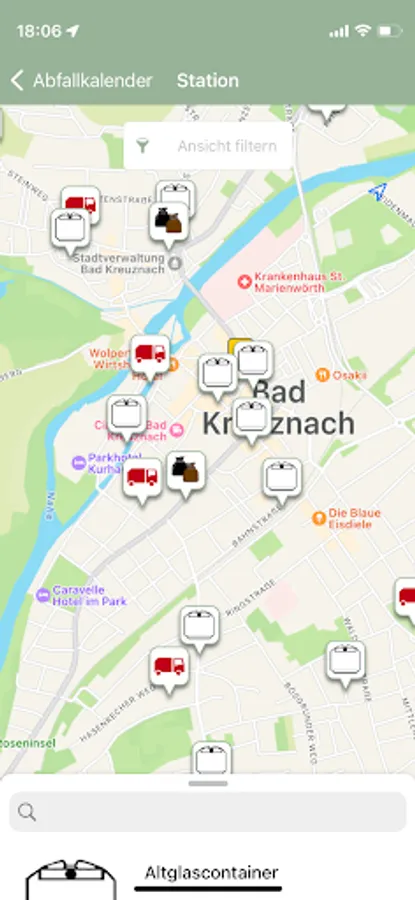 In the application you will also receive an overview of all glass containers and recycling centers on a map, as well as information and dates relating to waste disposal in the district of Bad Kreuznach.