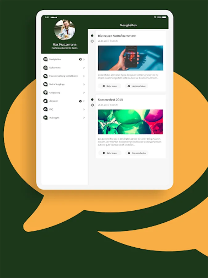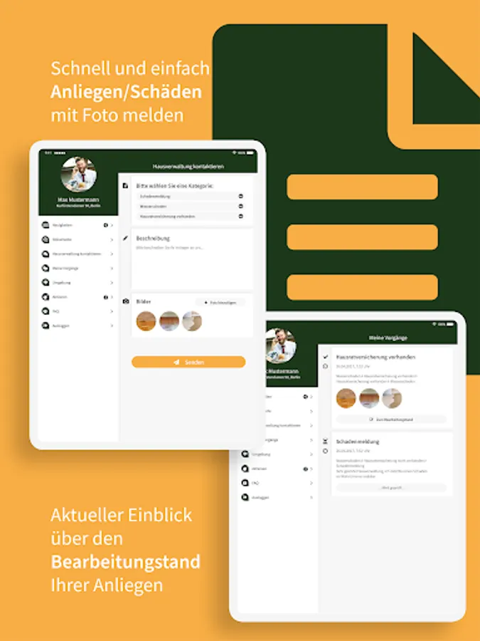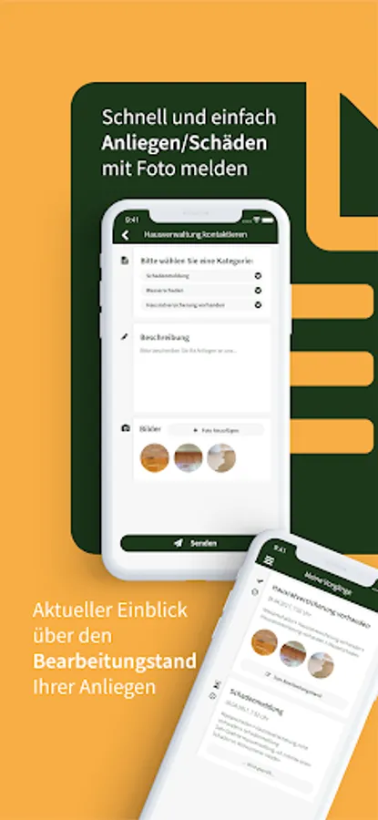 As a tenant or owner, you can report damage or concerns directly with photos via our app. Your inquiries are then available to our employees and can also be forwarded to craft businesses.