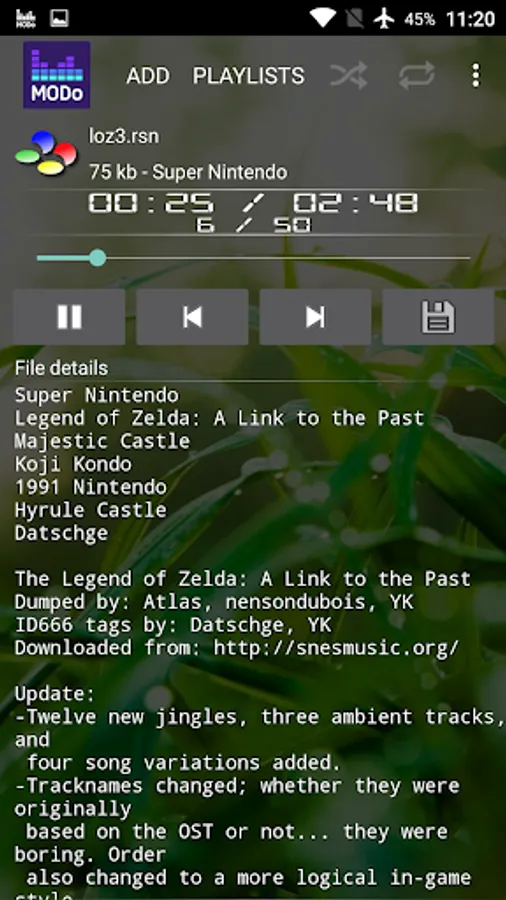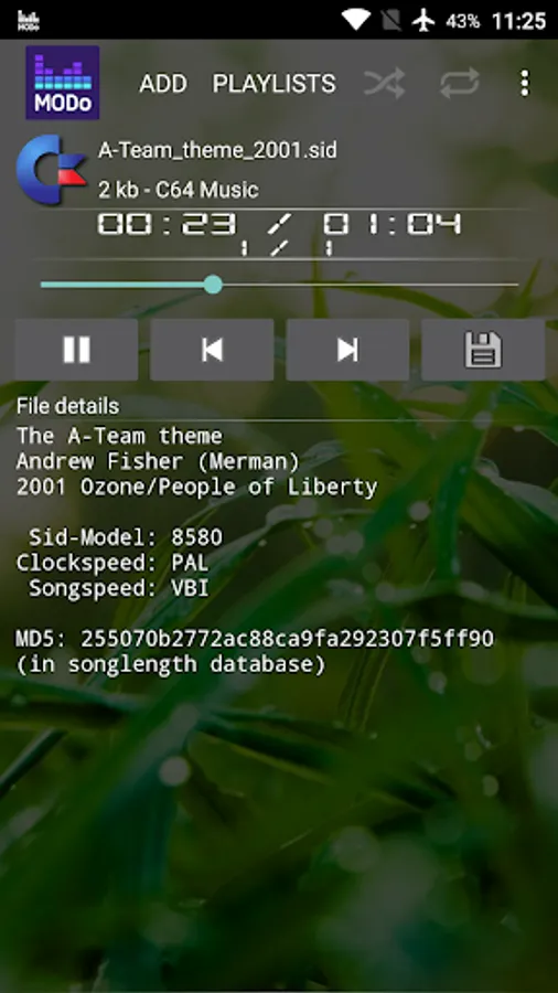 Allows you to playback some 8 / 16 bit computer music. Hear your favourite computer tunes on the go.
