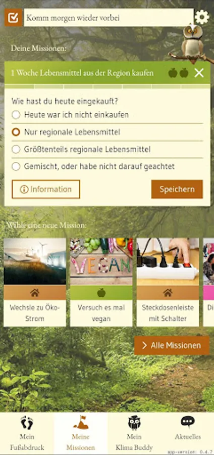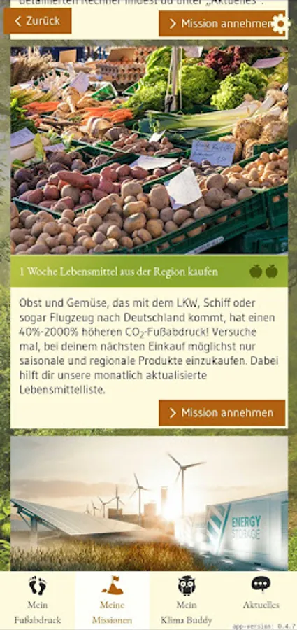 This is exactly where the “Klima Buddy” app from the state of Baden-Württemberg comes in. At the beginning, our users can determine their personal CO2 footprint with just a few questions and set it in relation to the German average. They will then be given lots of tips and tricks on how they can save CO2 in their everyday lives and live more climate-friendly. The users are supported by their Climate Buddy, who makes young and old a lot of fun. And of course the app rewards every attempt for a more climate-friendly everyday life with points with which new functions can be activated for the Climate Buddy. So it's worth using the app regularly and trying out new missions over and over again.