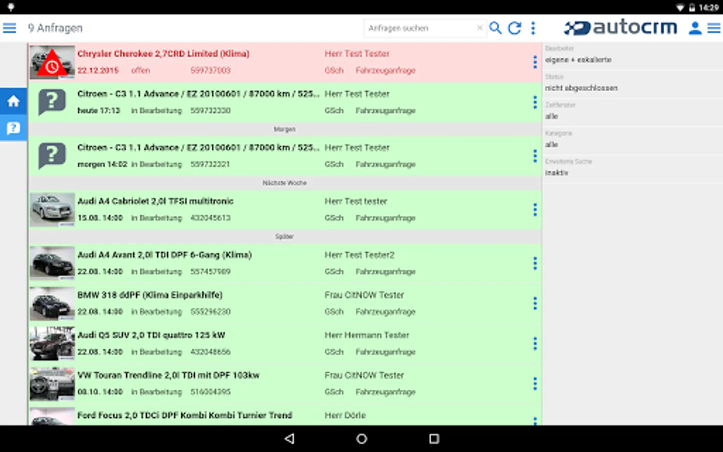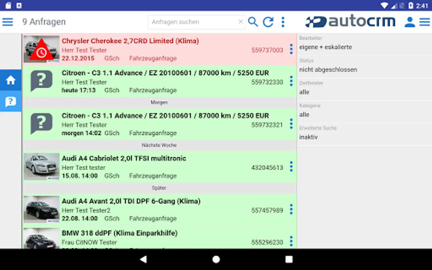 With the autocrm-app editing requests with your smartphone. Configurable Notifications alert you to open and overdue requests that can answer my call or email. In the detailed view you can see at a glance the vehicle data, the requested vehicle, and the complete communication with the interested parties. When composing a reply to the prospective customer you have the same text blocks are available as in your autocrm. Use the callback function, you can quickly and easily contact the interested parties. After editing a request by a call or an e-mail response, you can define a resubmission.
