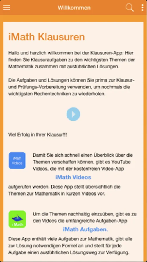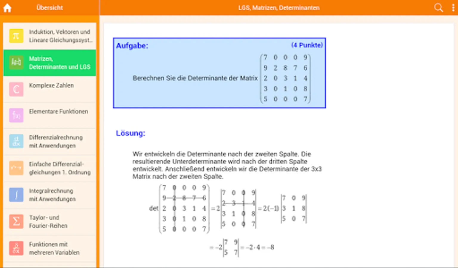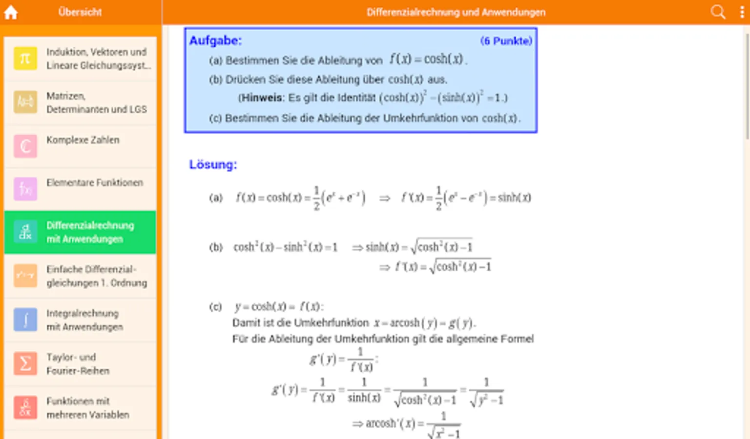 Here you can find exam questions on the major issues of engineering mathematics, along with detailed solutions. The tasks and solutions can thus be used to fine Klausur- and exam preparation in order again to recall the main computational techniques. This app is the perfect complement to the iMath-Tasks app and iMath video app.