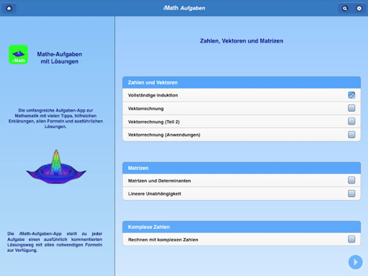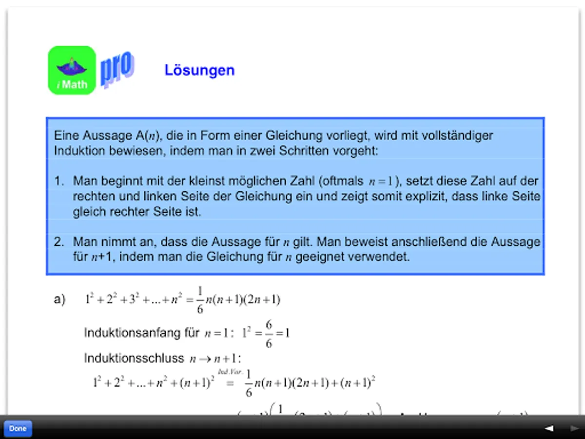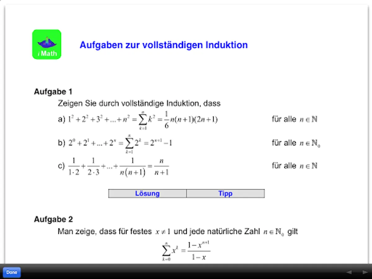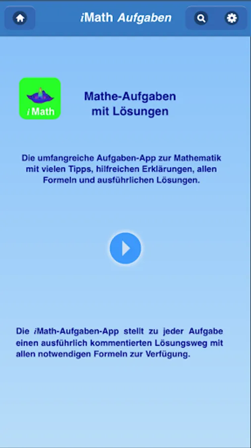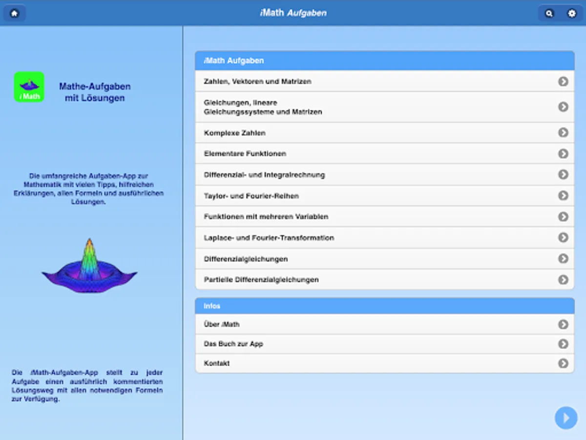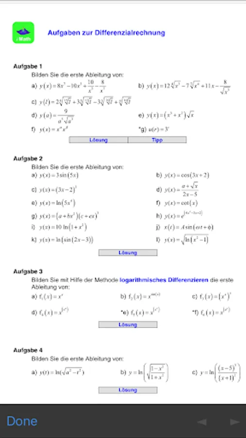 iMath is the most extensive Tasks app for study with many tips, all necessary for solving formulas and over 300 detail by worked solutions. This didactically appealing Tasks app with solutions can be used excellently for exam preparation and self-study.