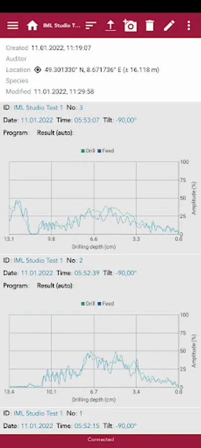 The IML Studio App is designed to improve documentation and management of measurement data obtained by wood inspections. You can save all the data gained and analyses are enormously simplified. Colored graphs, detail views or comparison modes simplify the analysis and facilitate clear data filing structures.
