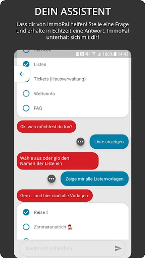 • INTELLIGENT WIZARD: talk to our assistant and use ImmoPal intuitively. Of course he also learns to do so.