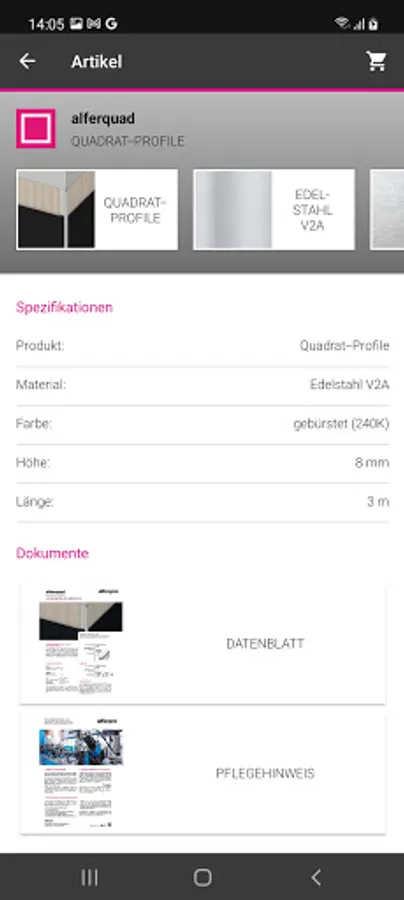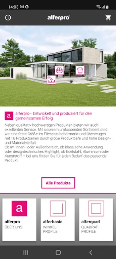 For our alferpro experts, it doesn't always have to be the long way. With the iPad, an icon at the top right takes you directly to the product overview. The product overview is displayed directly below the alferpro house on your smartphone - simply scroll down.