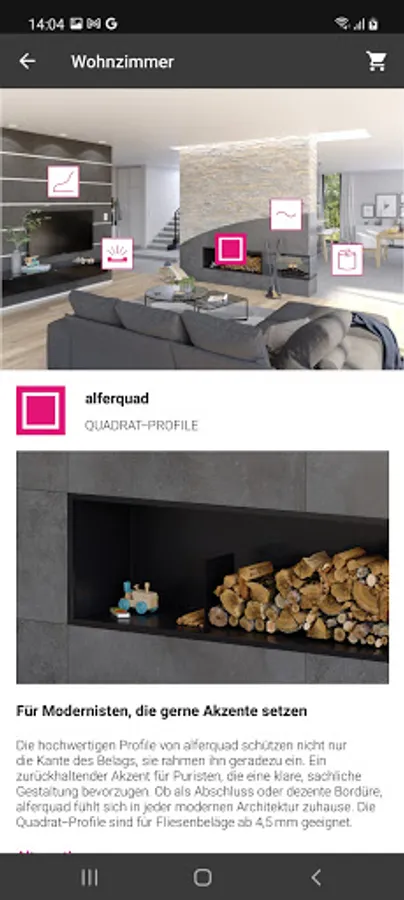 Are you interested in a product that you found in one of our rooms? Then click on the corresponding icon and you will be directed to the product overview.