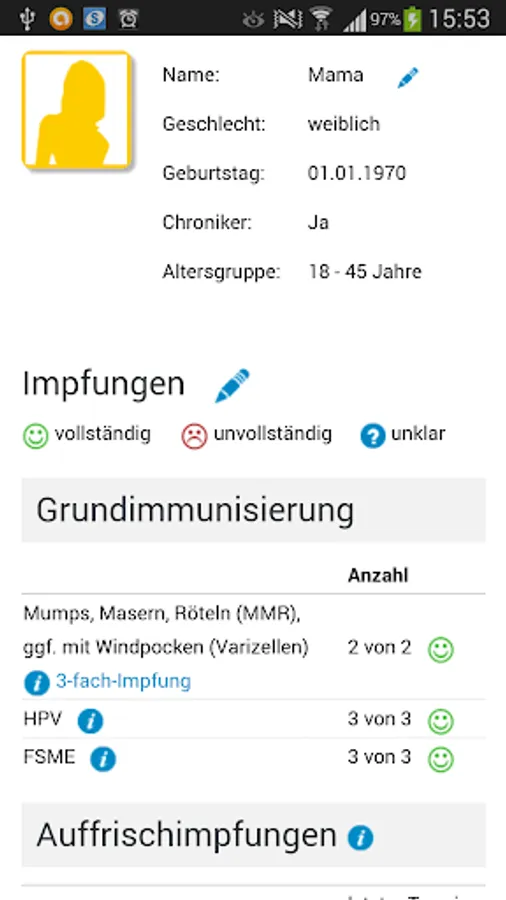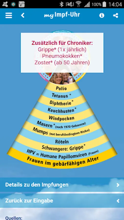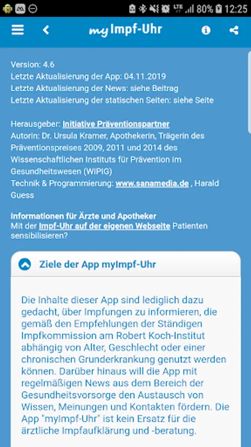 The app helps to refresh their own Impfwissen to check the vaccination and administer the vaccination of as many family members.