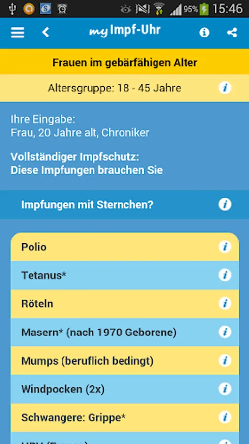 • For each health interested person who wants to find out before the doctor's visit, to which vaccination services he has in his age claim which vaccinations he or brush can complete.