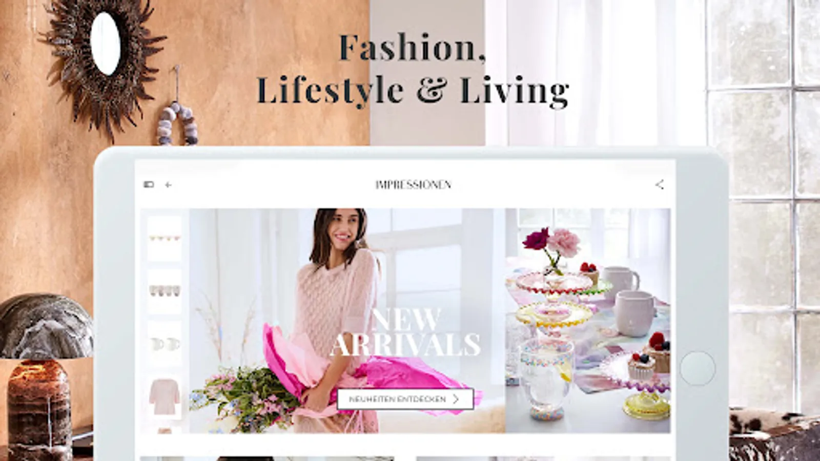 With the IMPRESSIONEN app you can discover our innovative and stylish collections from fashion, lifestyle & living anytime and anywhere and let yourself be inspired again and again. Don't miss any more trends and secure your favorites from the mix developed with a great deal of trend awareness and even more attention to detail for a new, special attitude to life.