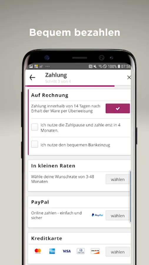 Pay as individual as you are, according to your wishes. On account, via PayPal, cash or credit card. Payment services, such as installment payment in up to 48 monthly installments or 4 months Number Pause (both for a fee, subject to status), can you choose simple and without formalities to and wish to combine both.