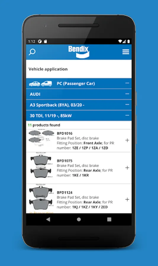 The catalogue App exclusively developed for the Bendix brand uses the very latest catalogue data and offers user-friendly search options (Bendix Article No., KBA No., OE No., Reference No.). The App targets the requirements needed to identify brake components. The catalogue data is automatically updated each week, no updating of the App required. Ideal for use in the retail trade and Workshops.