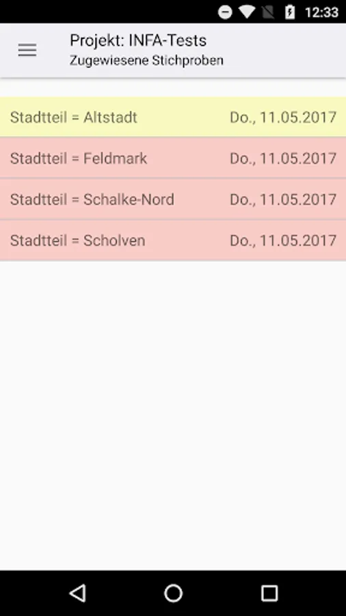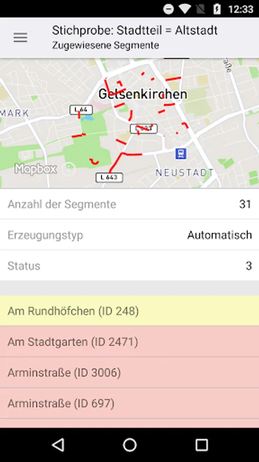 The software "DSQSmobil" enables the standardized measurement of city cleanliness directly on site. For this purpose, a quality inspector assesses a sample consisting of several road sections. In each section of the road, the objects present there (eg carriageway, sidewalks, parking bays) are to be graded on the basis of specific criteria (eg leaves, chewing gum, packaging waste, faeces). For each criterion, the quality inspector can display 5 reference images to assist in finding grades. In an interactive map, he can have both the road sections to be evaluated as well as his own position GPS-supported display. In addition, the quality inspector has the opportunity to send instant messages consisting of text and photos to the head office.