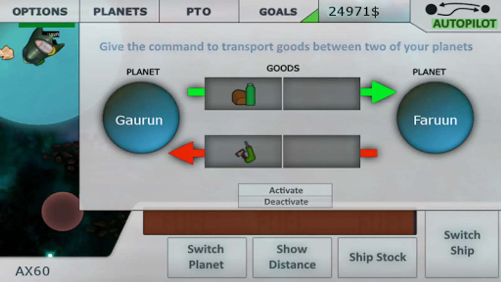 In the alpha universe, your can freely travel to other planets and trade there with goods. As a successful trader you can claim more planets and build your own production-chains.