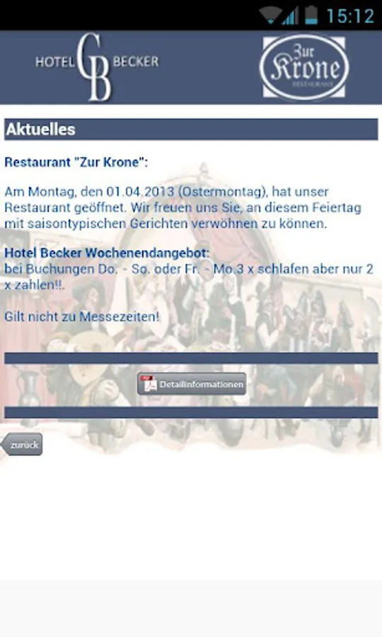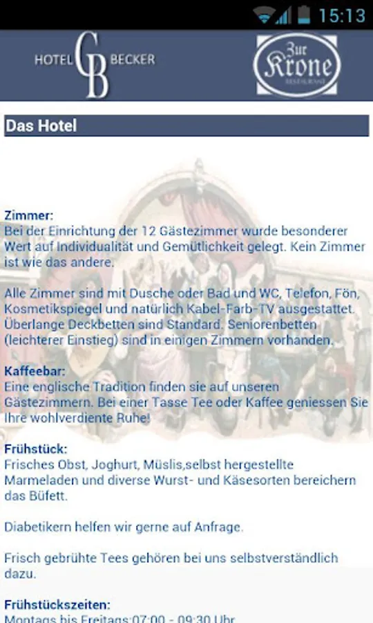 About the App Get the latest hotel and restaurant information on the CB Hotel / Restaurant "Zur Krone" in Nieder-Olm and can directly room bookings and reservations for the restaurant.