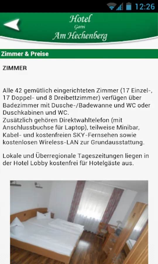 About the App you will receive current information about the Hotel Hotel am Hechenberg in Mainz-Hechtsheim. It can make room reservations directly and reservations as well as find out about the latest deals of the house.