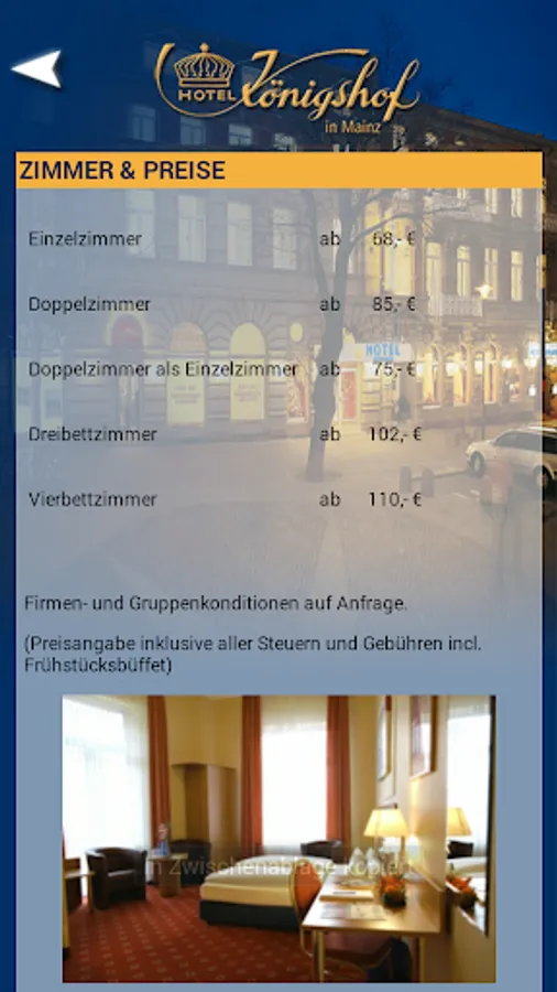 About the App you will receive current information about the Hotel Hotel Royal Court in Mainz.