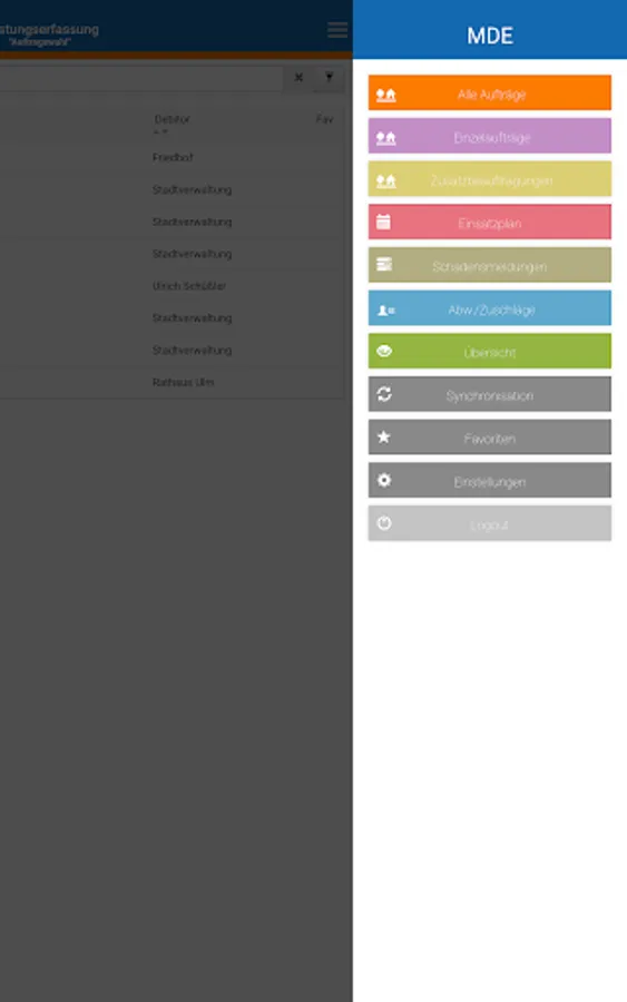 Our "MDE App" (mobile data acquisition) allows you to double-enter services, such as B. time, use of machines and material, in the building yard and municipal companies - regardless of what type and legal form - as well as in companies and public institutions.