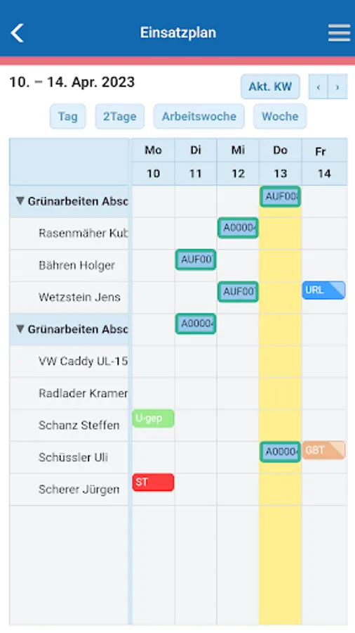 Intelligent control views ensure a complete overview of all employees for the recorded days.