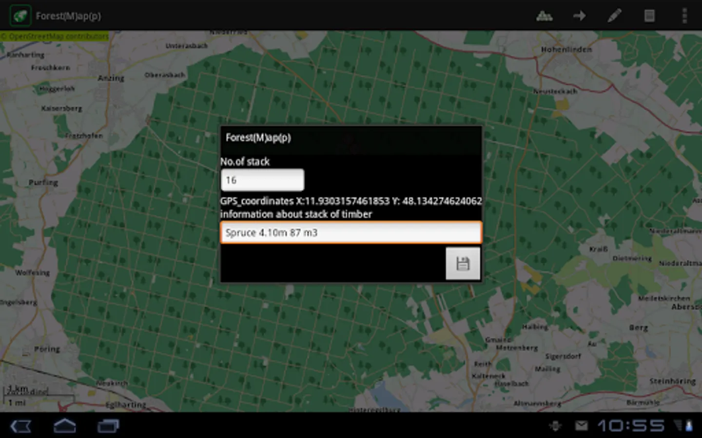 For foresters, forest workers or truck drivers - mark the location of your stacks of timber and communicate them easily. Usefull for everyone who wants to use offline maps and mark special places. This app is desinged as a tool for forestry, forest logistics and timber management but can also be used in agriculture or environmental protection.