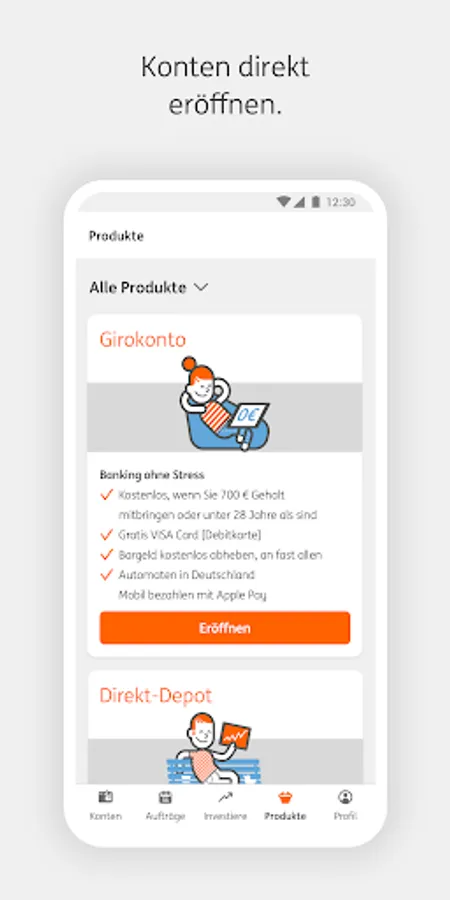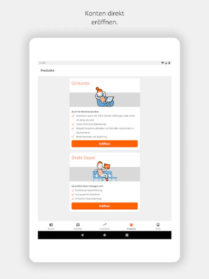 - For new ING customers: Simple current account opening including authentication and self-assignment of banking access data.