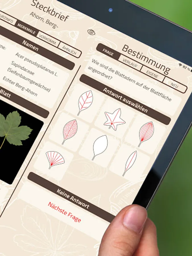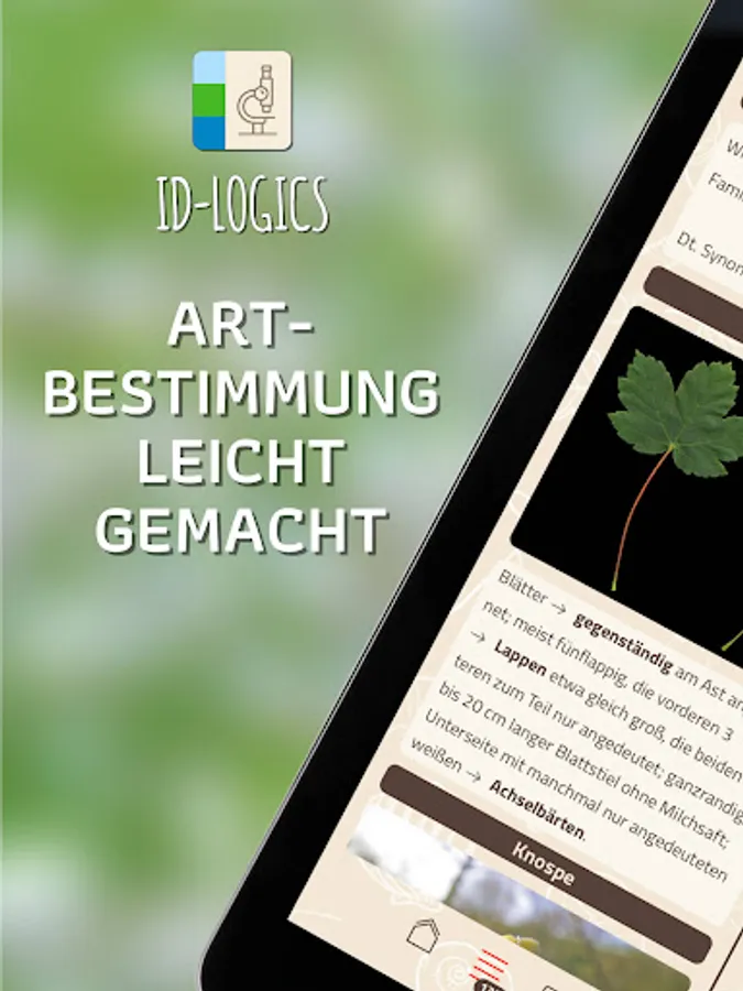 The app ID-Logics has its own intelligence. It uses an internal logic to ask you specific questions about very different characteristics that are easy to answer. We worked intensively on this logic for over three years, testing it together with experts and novices. This approach has several advantages that can not be achieved by an analog medium.