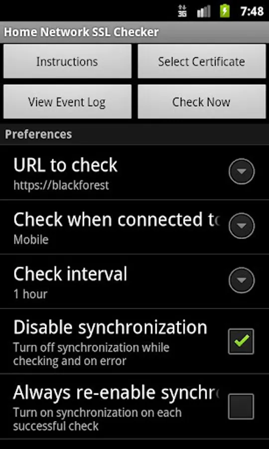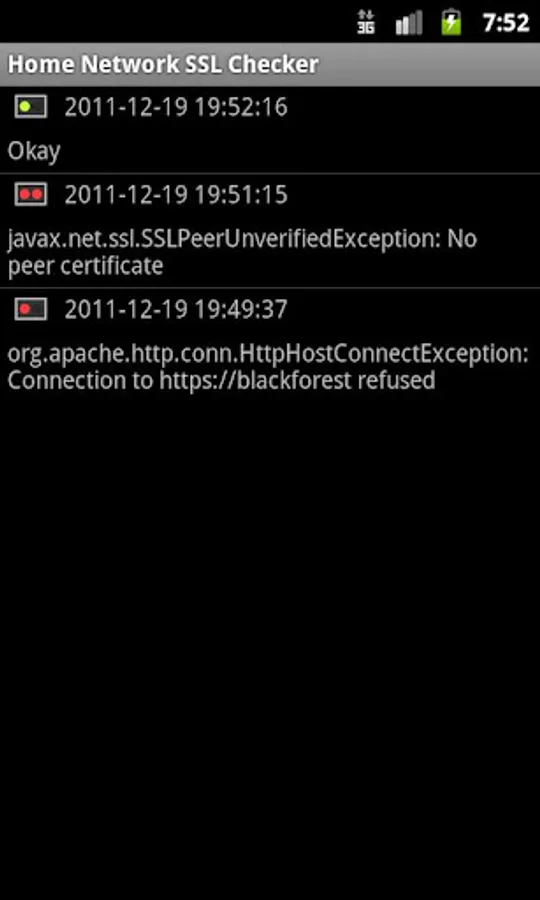 This app checks in configurable intervals if a given HTTPS URL is reachable and the server identifies itself with the right certificate. It consists of a home screen widget displaying the status with colored "signal lights":