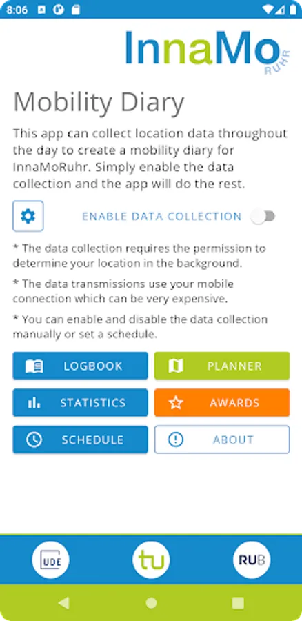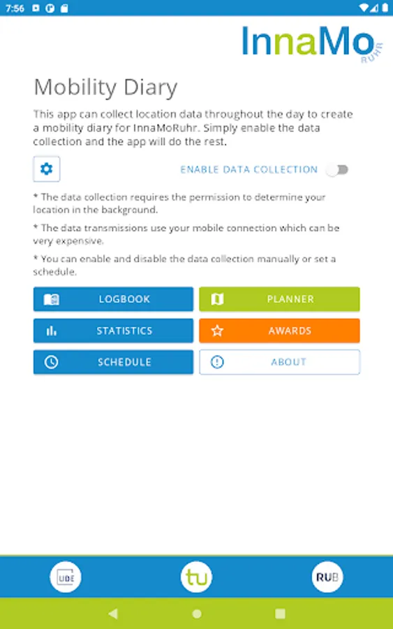 With the InnaMoRuhr app for smartphones you can automatically record your personal mobility diary. With the help of your diary, we can tailor the mobility concepts that are developed as part of the InnaMoRuhr project to your mobility behavior. Help us and get the app for your smartphone. Free of charge, of course.