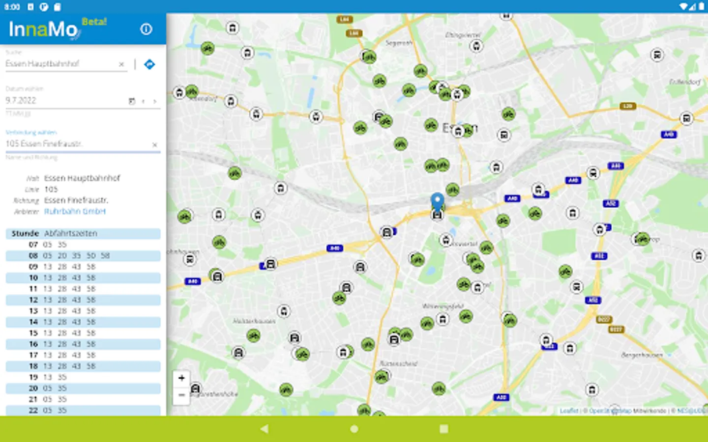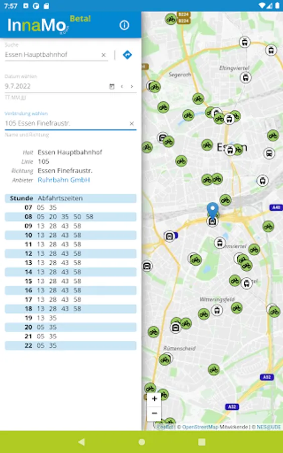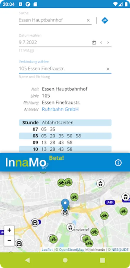 • Practical route planning: The integrated planner informs you about the mobility options in your vicinity and helps you to find the best routes in the Ruhr area.