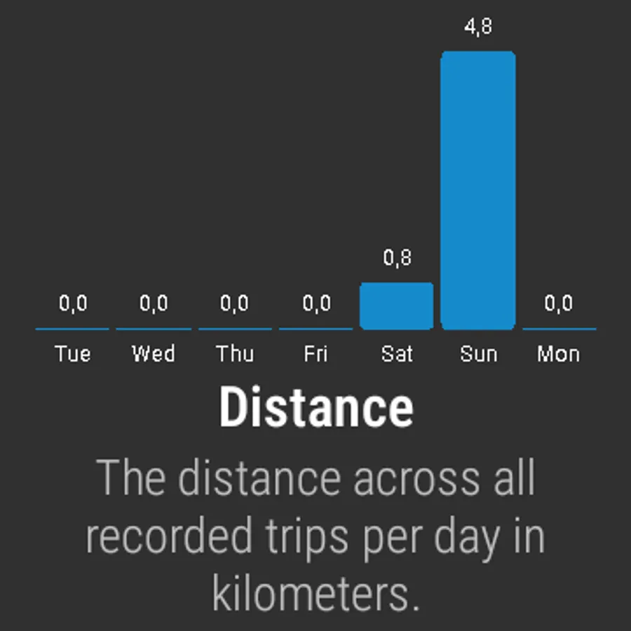 • Weekly statistics: The statistics summarize your mobility including time spend and distance travelled during the last week.