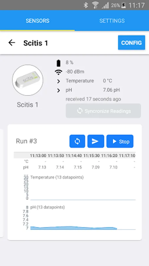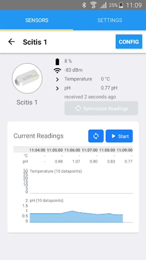 Measure the pH value, easy and safe! The application Innolab connects your Bluetooth enabled device with the mobile and handy pH meter Scitis. The use of disposable sensor strips ensures reliable measurement in cell culture medium for up to 72 hours. You can attend to other tasks while, since the pH value is automatically and continuously recorded. The display of data in real time in the Innolab or can be read collected at any time. An evaluation is made easier by the clever graphical illustration.