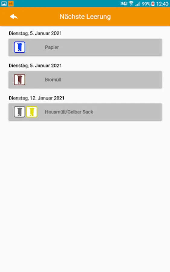 - Online collection calendar with reminder function for removing the containers. With the collection calendar, you will not miss a collection date including postponements of public holidays.