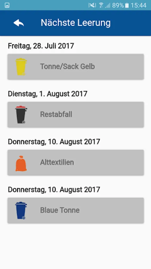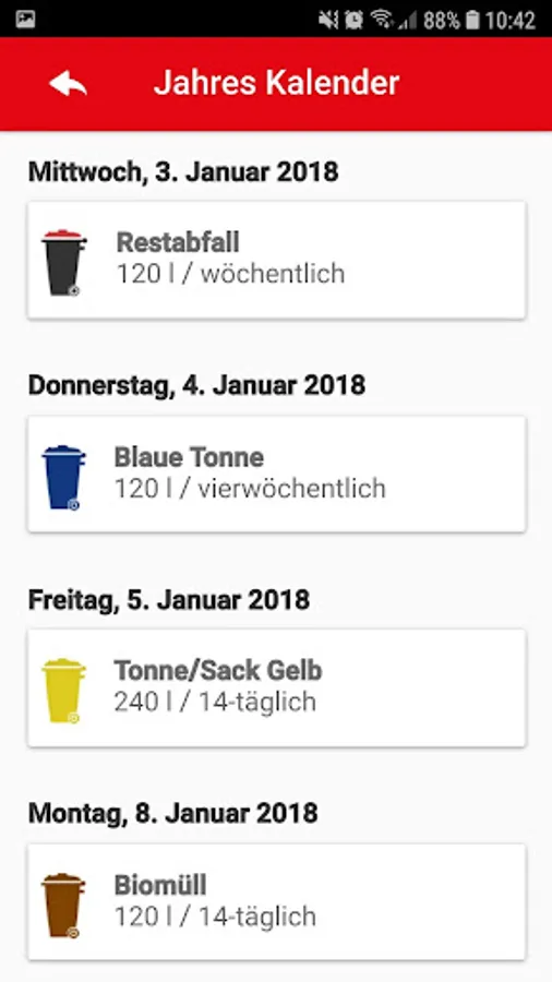 - Online dissipation calendar with reminder function for exposing the container. With the removal Calendar Never miss a removal appointment incl. The consideration of holiday shifts.