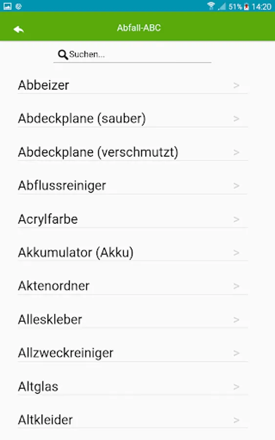 - Information on the acceptance of different types of waste via an integrated waste ABC