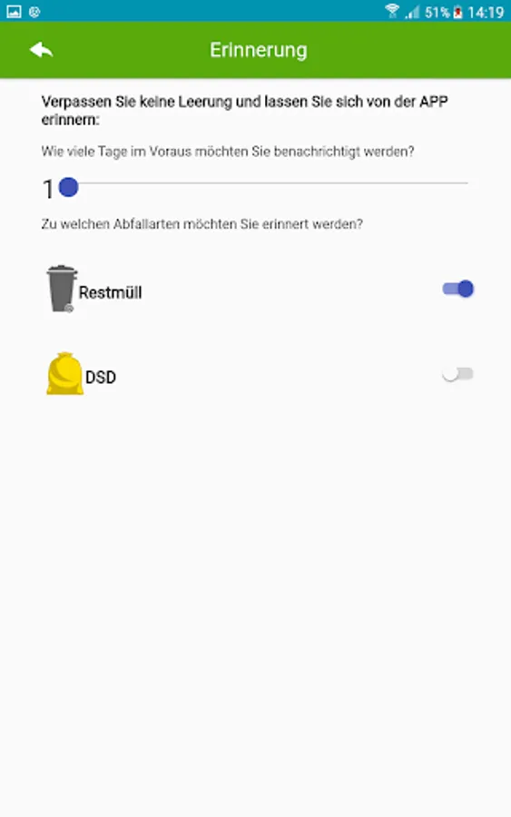 - Online disposal calendar with reminder function to put out the containers. With the collection calendar, you won't miss a collection date or collection dates due to holiday delays.