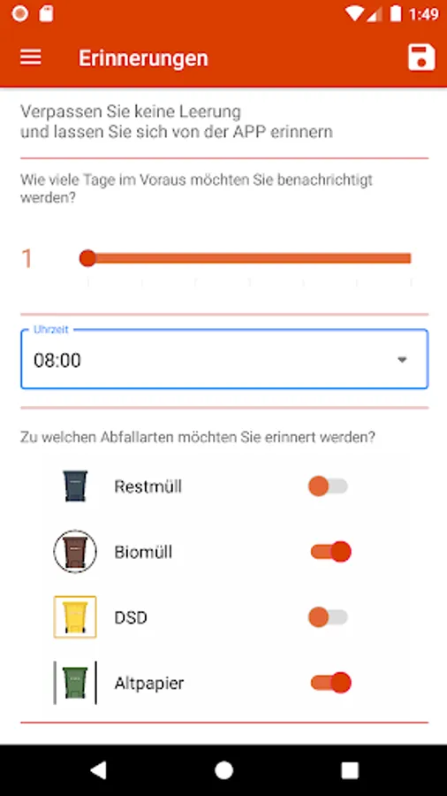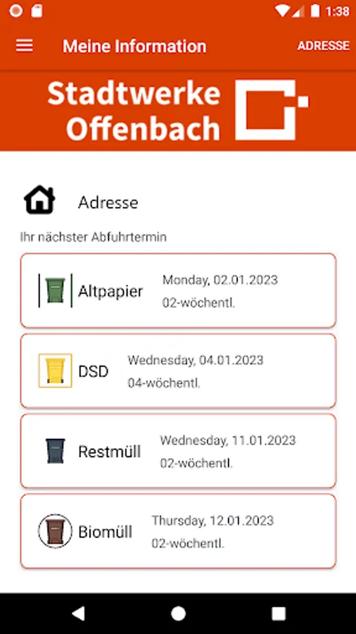 The city service app of Stadtwerke Offenbach provides information about the emptying dates of the waste bins in Offenbach am Main. The digital waste calendar is always at hand in the app, and thanks to the reminder function, users are reminded to leave their bins on the side of the road the evening before they are to be emptied. After registering and entering their address once, users receive an overview of their individual emptying dates for residual waste, organic waste, paper waste and packaging waste. If the collection dates are postponed, the app automatically takes the alternative dates into account. If you want to be reminded of the emptying dates of the respective bins the evening before, you can set this in the app so that you don't miss any bin emptying in the future.