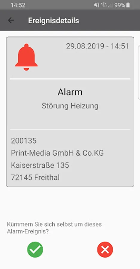 • Transmission of an alarm event with the decision on the treatment by the user.