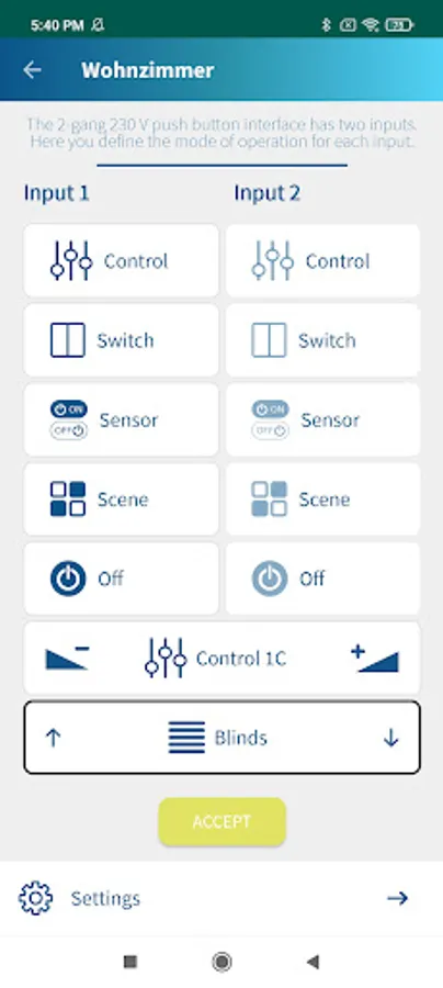 • High flexibility thanks to user specific settings for e. g. minimum brightness, switch-on behavior or blind moving time